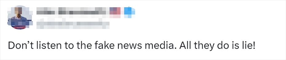 針對報(bào)道了特朗普這一言論的美國媒體,有網(wǎng)民留言:“不要聽那些虛假新聞媒體說的,他們說的都是謊言?!?/p>