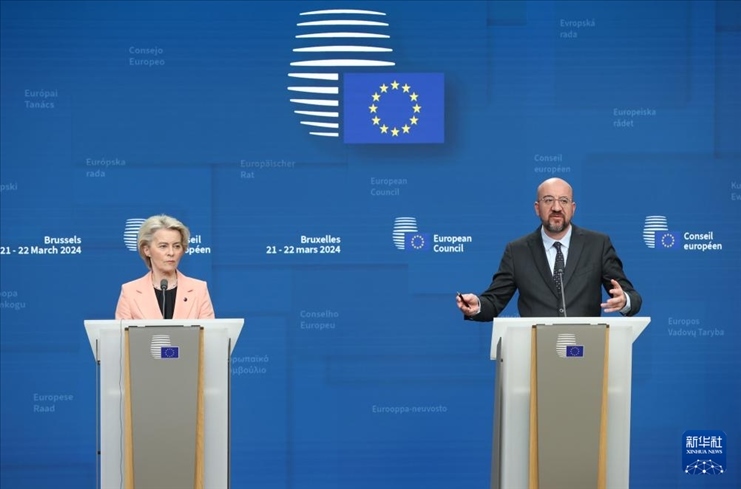 3月21日,在比利時(shí)布魯塞爾,歐盟委員會(huì)主席馮德萊恩在歐盟峰會(huì)期間出席新聞發(fā)布會(huì)。新華社記者 趙丁喆 攝