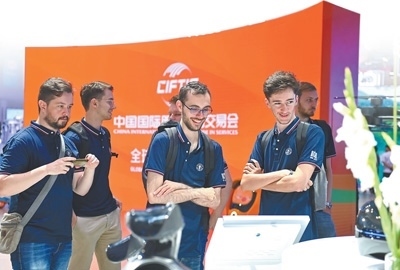 北京交通大學(xué)留學(xué)生在北京國(guó)家會(huì)議中心參觀2023年中國(guó)國(guó)際服務(wù)貿(mào)易交易會(huì)。胡慶明攝(影像中國(guó))