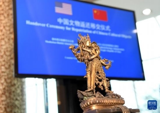 4月17日,在美國紐約中國駐紐約總領(lǐng)館,中美雙方代表出席中國流失文物藝術(shù)品返還移交儀式。新華社記者 李睿 攝