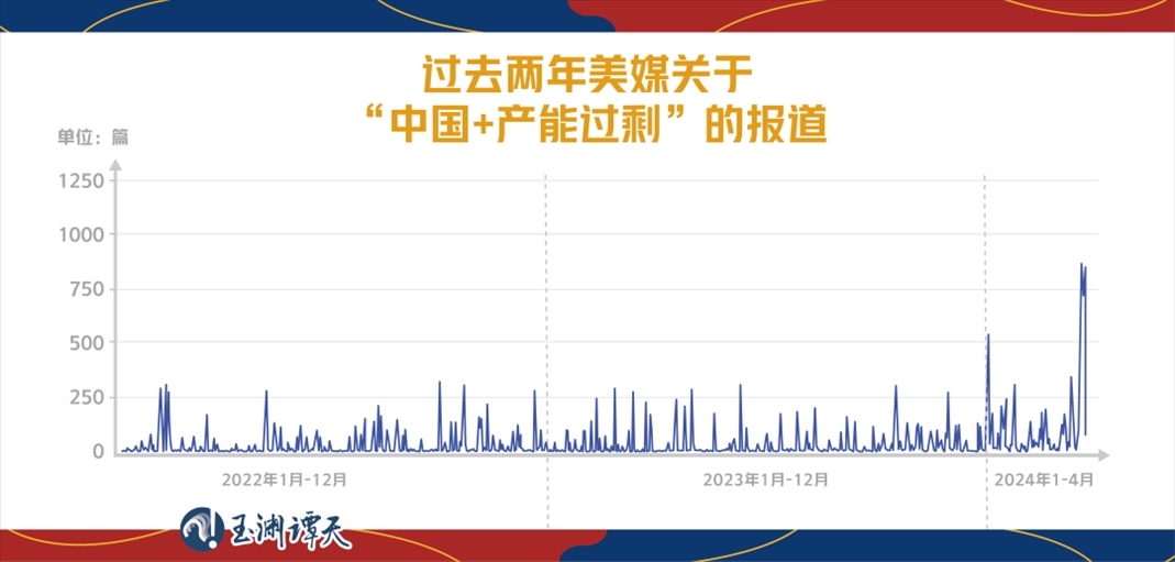 檢索美媒同時(shí)提及“中國(guó)”“產(chǎn)能過(guò)?!钡膱?bào)道,從數(shù)量變化中,可以看出,所謂中國(guó)“產(chǎn)能過(guò)剩”的話題,從2022年就已經(jīng)開(kāi)始。