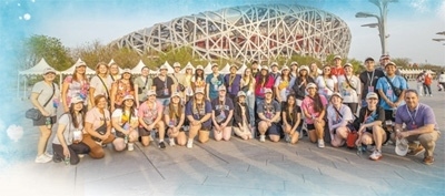 在北京國(guó)家體育場(chǎng)外,馬斯卡廷中學(xué)師生合影留念。