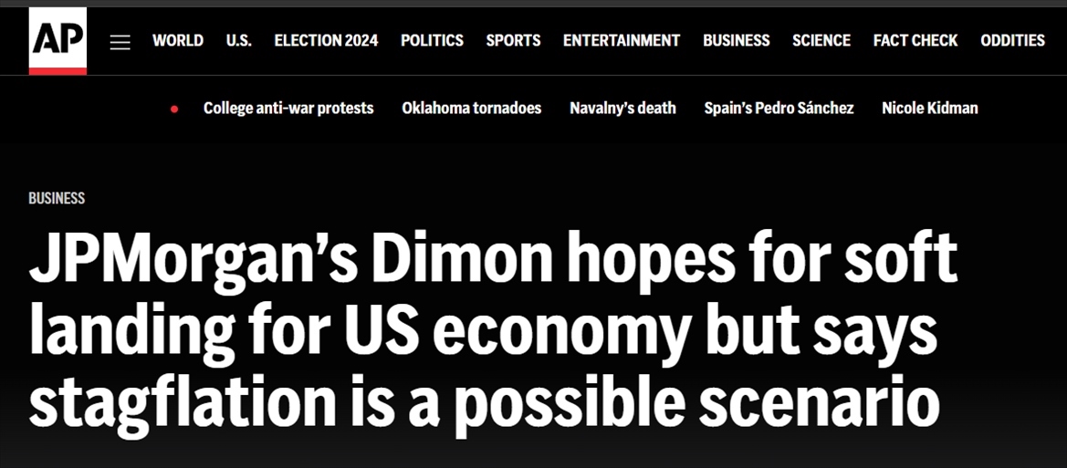 近日,摩根大通公司首席執(zhí)行官杰米·戴蒙在接受美聯(lián)社采訪時稱,他對美國經(jīng)濟(jì)仍保持“審慎”,并表示通脹可能會在更長時間內(nèi)變得更棘手,“滯脹也可能是(美國經(jīng)濟(jì)面臨的)一種情況”。