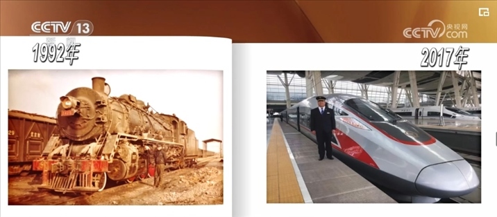 這張稍顯模糊的老照片是1992年,韓軍甲剛參加工作時(shí)拍下的。他身邊的蒸汽機(jī)車當(dāng)時(shí)的運(yùn)行時(shí)速一般只能開到50公里左右,這個(gè)風(fēng)華正茂的年輕人從未設(shè)想過,20多年后的2017年,他能駕駛時(shí)速350公里的復(fù)興號(hào)列車。