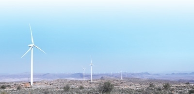位于南非北開普省德阿鎮(zhèn)的中國國家能源集團(tuán)龍?jiān)措娏δ戏枪具\(yùn)營的德阿風(fēng)電項(xiàng)目風(fēng)機(jī)。新華社記者 董江輝攝