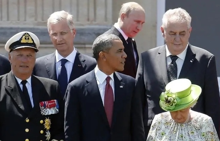 2014年,諾曼底登陸70周年紀(jì)念活動(dòng)上,俄總統(tǒng)普京與時(shí)任美國總統(tǒng)奧巴馬同框。