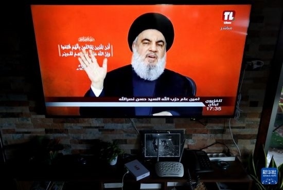 這是9月19日在黎巴嫩貝魯特拍攝的真主黨領導人納斯魯拉發(fā)表講話的電視畫面。新華社發(fā)(比拉爾·賈維希攝)