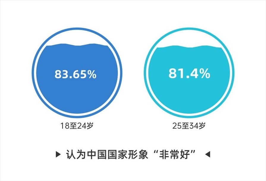 調(diào)查中,全球多數(shù)受訪者對(duì)中國(guó)國(guó)家形象抱有好感,其中七成受訪者選擇“非常好”。值得一提的是,18至24歲和25至34歲的青年受訪者持同樣好感度的占比最高,分別達(dá)到83.65%和81.4%,遠(yuǎn)高于其他年齡段的受訪者。