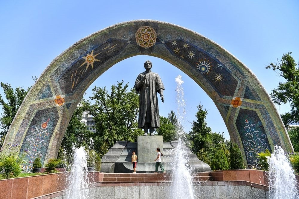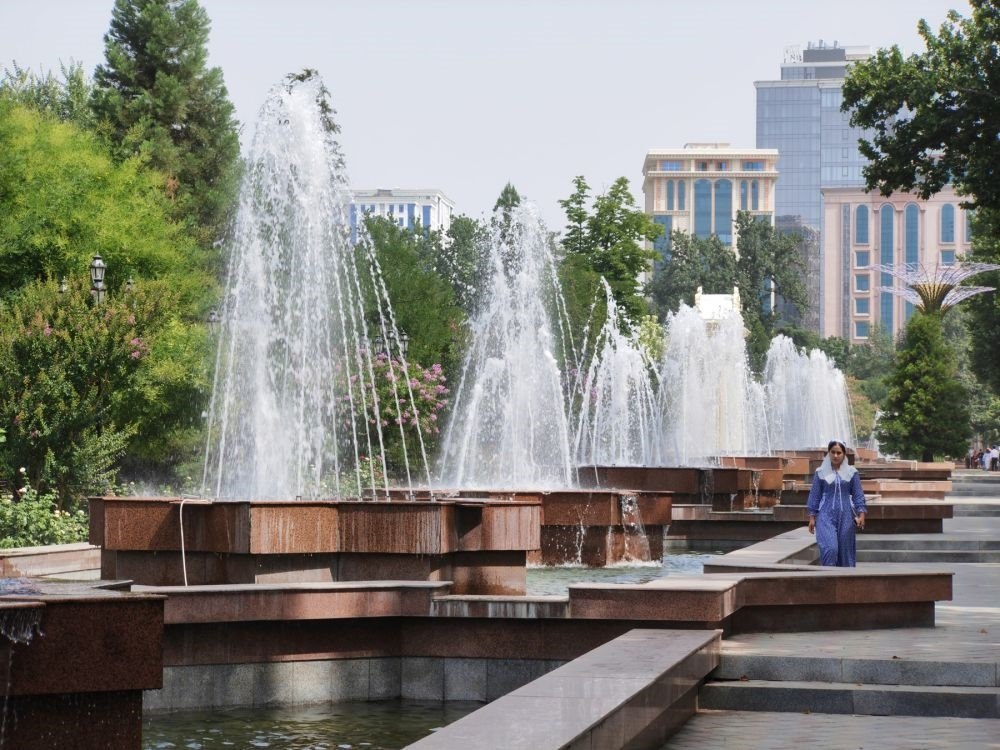 ↑位于杜尚別的魯達(dá)基公園。 新華社記者 燕雁 攝