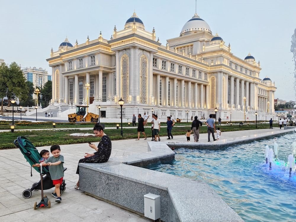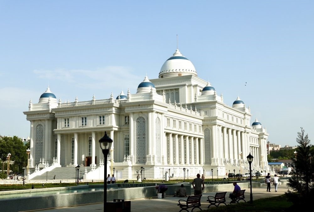 ↑位于杜尚別的塔吉克斯坦議會(huì)大樓。 新華社記者 周荻瀟 攝