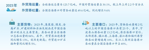 在全球范圍內(nèi),超八成的國(guó)際貿(mào)易通過(guò)海上運(yùn)輸實(shí)現(xiàn),海運(yùn)是中國(guó)外貿(mào)的“大動(dòng)脈”。《中國(guó)港口運(yùn)行分析報(bào)告(2024)》(以下簡(jiǎn)稱《報(bào)告》)顯示,2023年,在外貿(mào)需求回暖、全球貿(mào)易體系重塑等因素推動(dòng)下,中國(guó)外貿(mào)海運(yùn)規(guī)模增長(zhǎng)較快,全國(guó)沿海港口外貿(mào)吞吐量達(dá)49.6億噸,同比增長(zhǎng)9.6%。