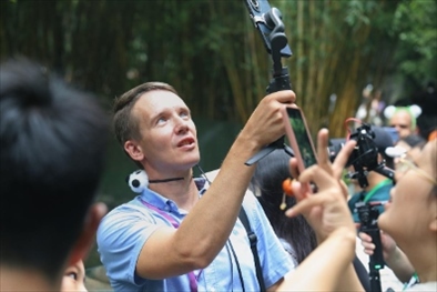 俄羅斯《俄羅斯報(bào)》視覺(jué)內(nèi)容編輯阿爾圖爾·杰魯諾夫在拍攝熊貓。(李佩藺 攝)