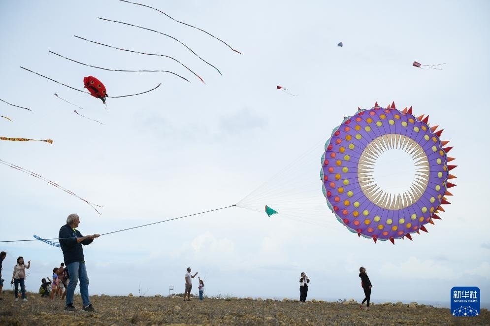 10月19日,在馬耳他戈佐島阿爾卜,人們在第7屆戈佐國際風(fēng)箏節(jié)上放風(fēng)箏。
