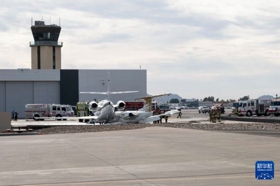 斯科茨代爾機場官員當天在新聞發(fā)布會上說,事故發(fā)生在當?shù)貢r間下午2時39分,一架從得克薩斯州奧斯汀飛來的中型商務機在降落滑行時,左主起落架發(fā)生故障,飛機偏離跑道后撞上地面停放的另一架機體較大的商務飛機。