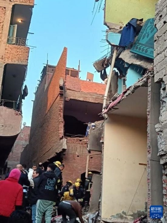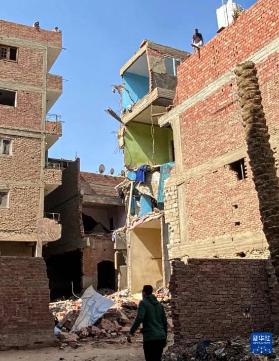 這是2月17日在埃及吉薩省拍攝的發(fā)生爆炸的居民樓。