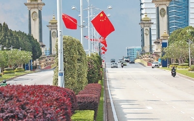 4月15日,馬來西亞行政首都布特拉加亞街頭懸掛著中馬兩國國旗,歡迎習(xí)近平主席到訪。