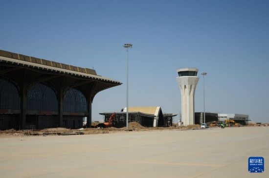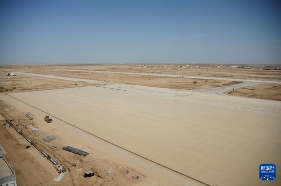 這是4月8日在伊拉克濟加爾省拍攝的由中國建筑集團有限公司承建的納西里耶國際機場項目施工現(xiàn)場。新華社記者 段敏夫 攝
