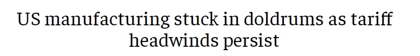 此外,印度《經(jīng)濟(jì)時報》2日發(fā)表題為《關(guān)稅阻力持續(xù)存在 美國制造業(yè)陷入低迷》的文章。文章指出,11月,美國制造業(yè)連續(xù)第九個月萎縮,工廠面臨訂單下滑和原材料價格上漲的雙重困境,進(jìn)口關(guān)稅的拖累持續(xù)存在。