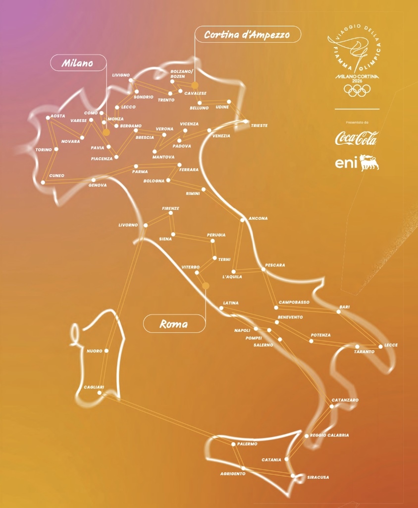 米蘭冬奧會(huì)火炬?zhèn)鬟f路線圖。圖源:米蘭冬奧組委