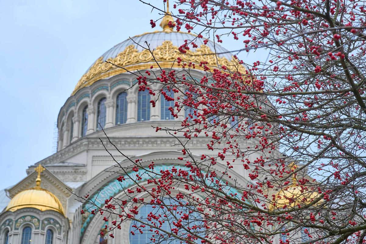 這是2025年11月30日在俄羅斯喀瑯施塔得拍攝的海軍大教堂。(圖片來(lái)源:新華社)