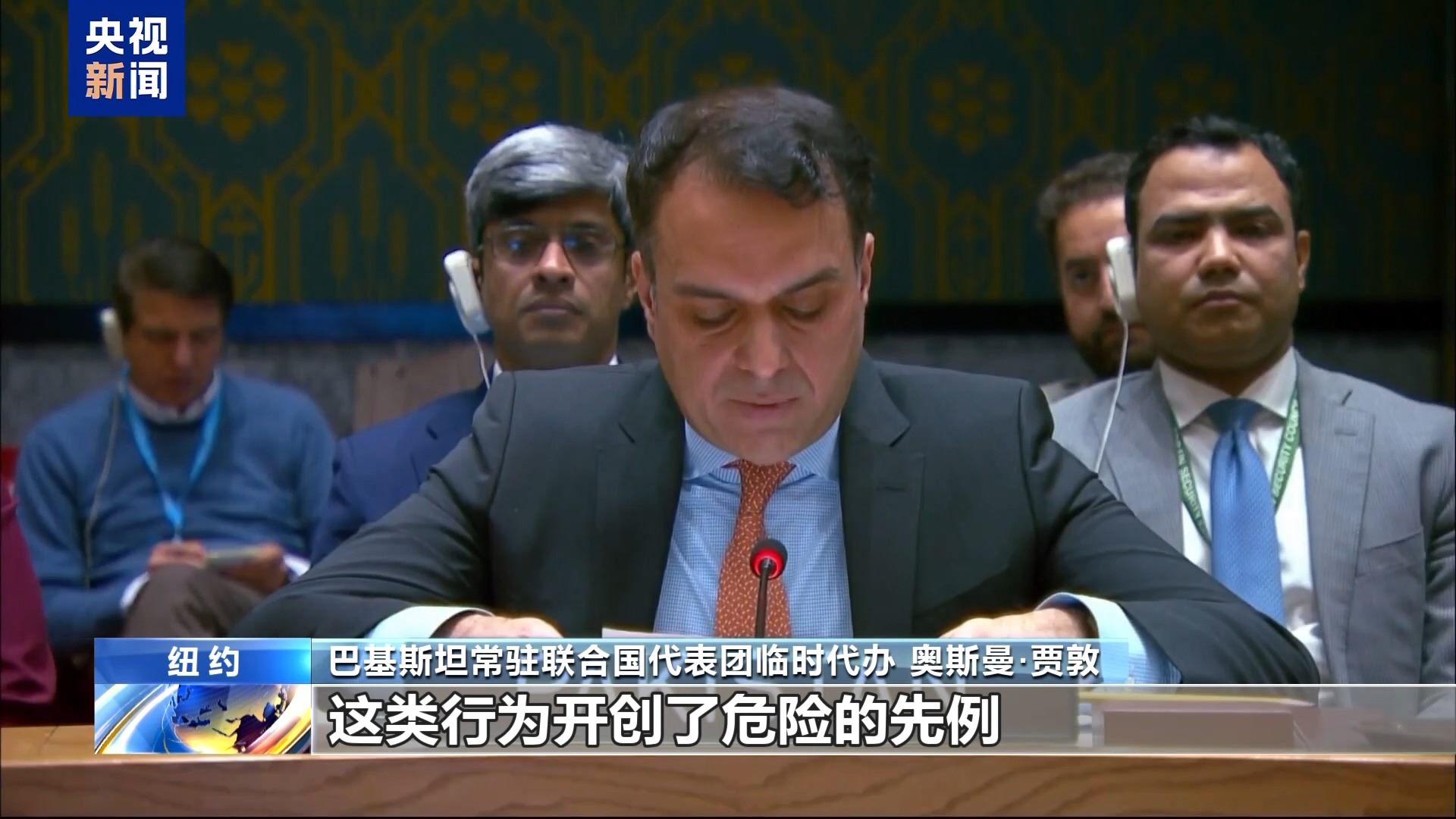 巴基斯坦常駐聯(lián)合國(guó)代表團(tuán)臨時(shí)代辦 奧斯曼·賈敦:這類行為開創(chuàng)了危險(xiǎn)的先例,對(duì)全球法律框架的根基構(gòu)成威脅。