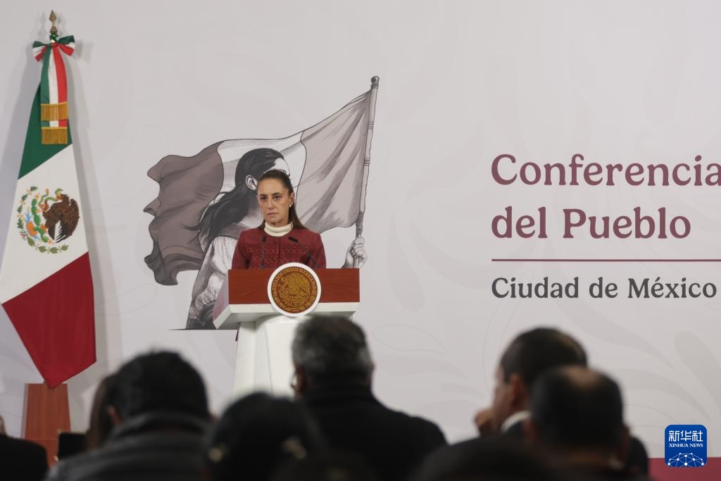 1月12日,墨西哥總統(tǒng)克勞迪婭·辛鮑姆在首都墨西哥城參加例行新聞發(fā)布會。新華社發(fā)(弗朗西斯科·卡涅多攝)