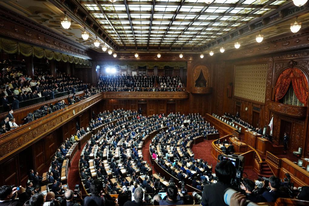 這是1月23日在日本東京拍攝的國會(huì)眾議院全體會(huì)議現(xiàn)場(chǎng)。日本眾議院議長(zhǎng)額賀福志郎當(dāng)天在眾議院全體會(huì)議上宣讀解散詔書,日本眾議院正式解散。新華社記者賈浩成攝
