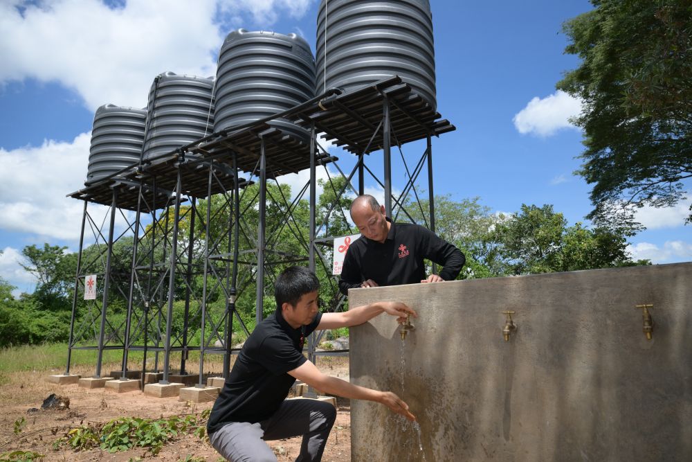 1月26日,在津巴布韋中馬紹納蘭省沙姆瓦地區(qū)津迪村,中國援津第四期高級農(nóng)業(yè)專家組專家在一處儲水點(diǎn)檢查水龍頭。新華社記者 楊光 攝