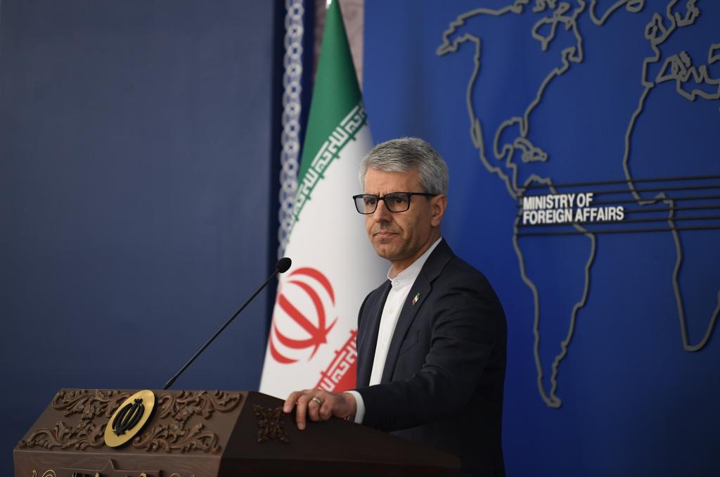 2026年2月23日,在伊朗首都德黑蘭,伊朗外交部發(fā)言人巴加埃出席每周例行記者會。新華社記者 沙達提 攝