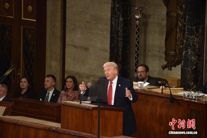 當(dāng)?shù)貢r(shí)間2月24日晚,美國總統(tǒng)特朗普在國會參眾兩院聯(lián)席會議上發(fā)表國情咨文講話,聚焦經(jīng)濟(jì)、移民等議題。這是特朗普在本總統(tǒng)任期內(nèi)首次發(fā)表國情咨文。 記者 沙晗汀 攝