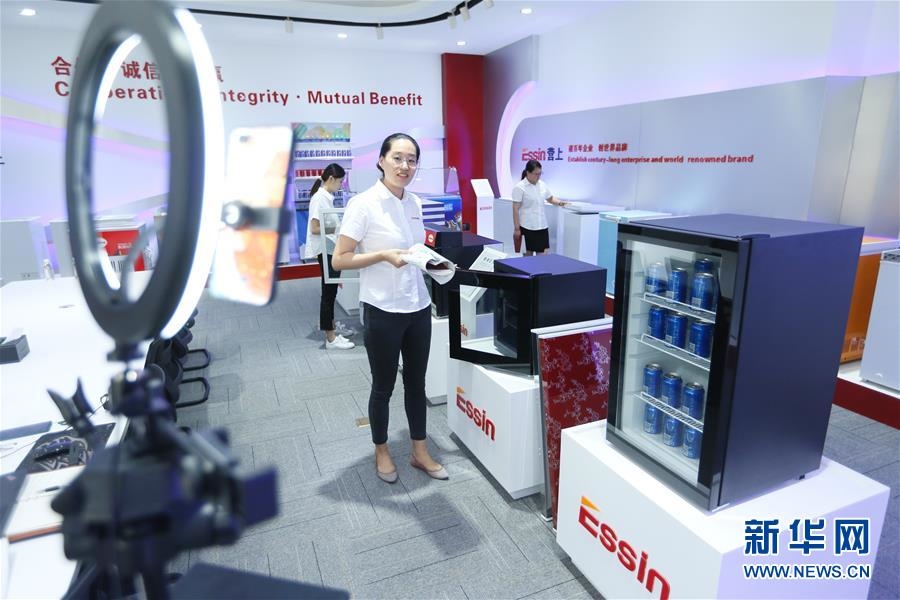 6月15日,在青島營上電器有限公司,營銷人員通過廣交會直播平臺推介出口到海外市場的冰箱。當日,第127屆廣交會拉開帷幕。這是我國首次將廣交會整體性“搬上云端”。本屆廣交會會期10天,保持24小時不間斷,按16大類商品設置50個展區(qū),180萬件展品同期上線展示。新華社發(fā)(梁孝鵬攝)