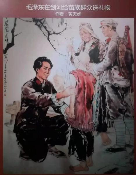 “當我等行經(jīng)劍河縣附近之某村落時,見路邊有一老婦與一童子,身穿單衣,倒于路邊,氣息尚存……正詢問間,赤軍領袖毛澤東至,告以老婦所言。當時毛即時從身上脫下毛線衣一件及行李中取出被單一條,授予老婦,并命人給以白米一斗。老婦則連連道謝含笑而去?!?/p>