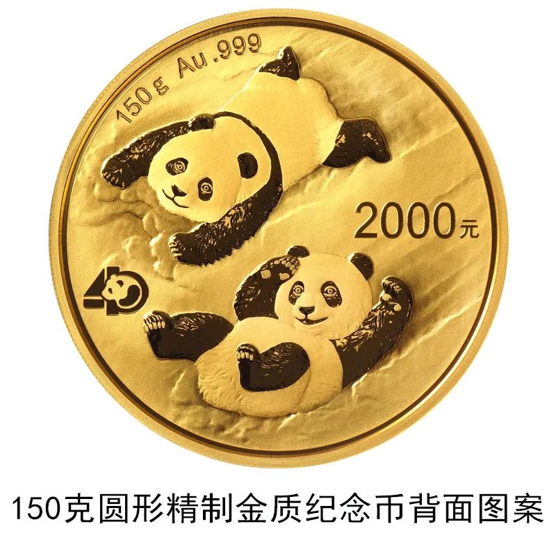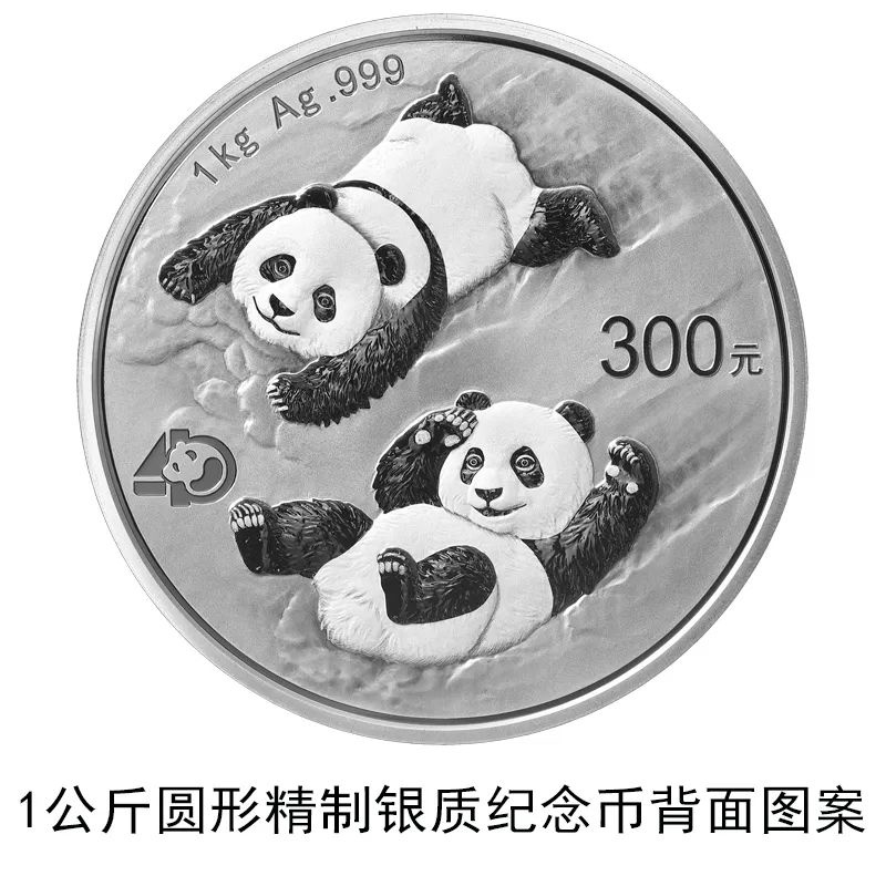 該套貴金屬紀(jì)念幣正面圖案均為北京天壇祈年殿,并刊國(guó)名、年號(hào);背面圖案均為大熊貓滑雪嬉戲場(chǎng)景,輔以“熊貓金幣發(fā)行40周年標(biāo)識(shí)”元素,并刊面額、重量及成色。