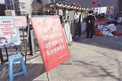 2月23日上午,通州區(qū)武夷花園月季園門前擺放著“前方管控區(qū)域”的告示牌。 新京報記者 王子誠 攝