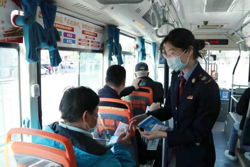 天津市稅務(wù)局第一稽查局組織業(yè)務(wù)骨干在公交車(chē)上進(jìn)行稅法宣傳。受訪(fǎng)者供圖
