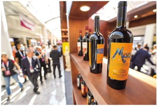 這是賀蘭山葡萄酒展銷會(huì)現(xiàn)場(chǎng)展示的寧夏葡萄酒(9月7日攝)。新華社記者馮開華攝
