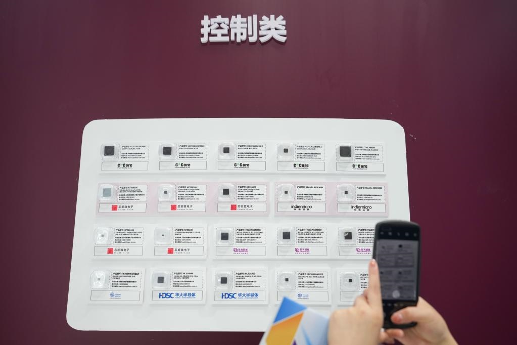8月26日,一位參觀者在拍攝展出的車用芯片。當(dāng)日,2022世界新能源汽車大會在北京、海南兩地以線上、線下相結(jié)合的方式召開。新華社記者鞠煥宗攝