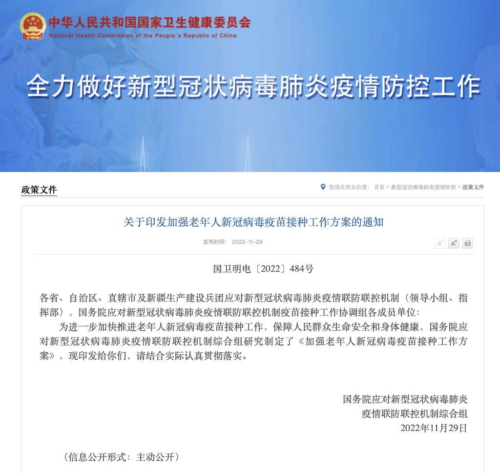 國務(wù)院聯(lián)防聯(lián)控機制印發(fā)《加強老年人新冠病毒疫苗接種工作方案》