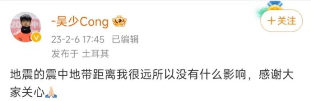 任凱懿和吳少聰也先后發(fā)文報平安。