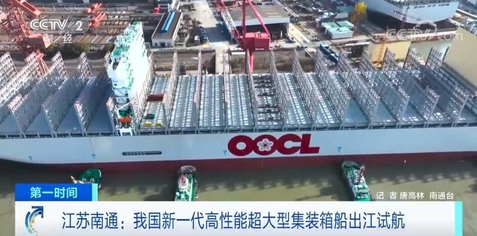 我國新一代高性能超大型集裝箱船出江試航