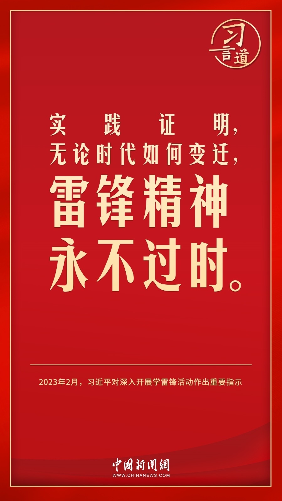 今年是毛澤東等老一輩革命家為雷鋒同志題詞60周年。黨的十八大以來,習(xí)近平總書記就學(xué)習(xí)弘揚雷鋒精神多次作出重要指示,他強調(diào),無論時代如何變遷,雷鋒精神永不過時。