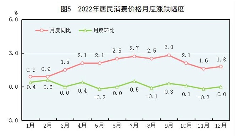 全年居民消費價格比上年上漲2.0%。工業(yè)生產(chǎn)者出廠價格上漲4.1%。工業(yè)生產(chǎn)者購進價格上漲6.1%。農(nóng)產(chǎn)品生產(chǎn)者價格[9]上漲0.4%。12月份,70個大中城市中,新建商品住宅銷售價格同比上漲的城市個數(shù)為16個,持平的為1個,下降的為53個;二手住宅銷售價格同比上漲的城市個數(shù)為6個,下降的為64個。