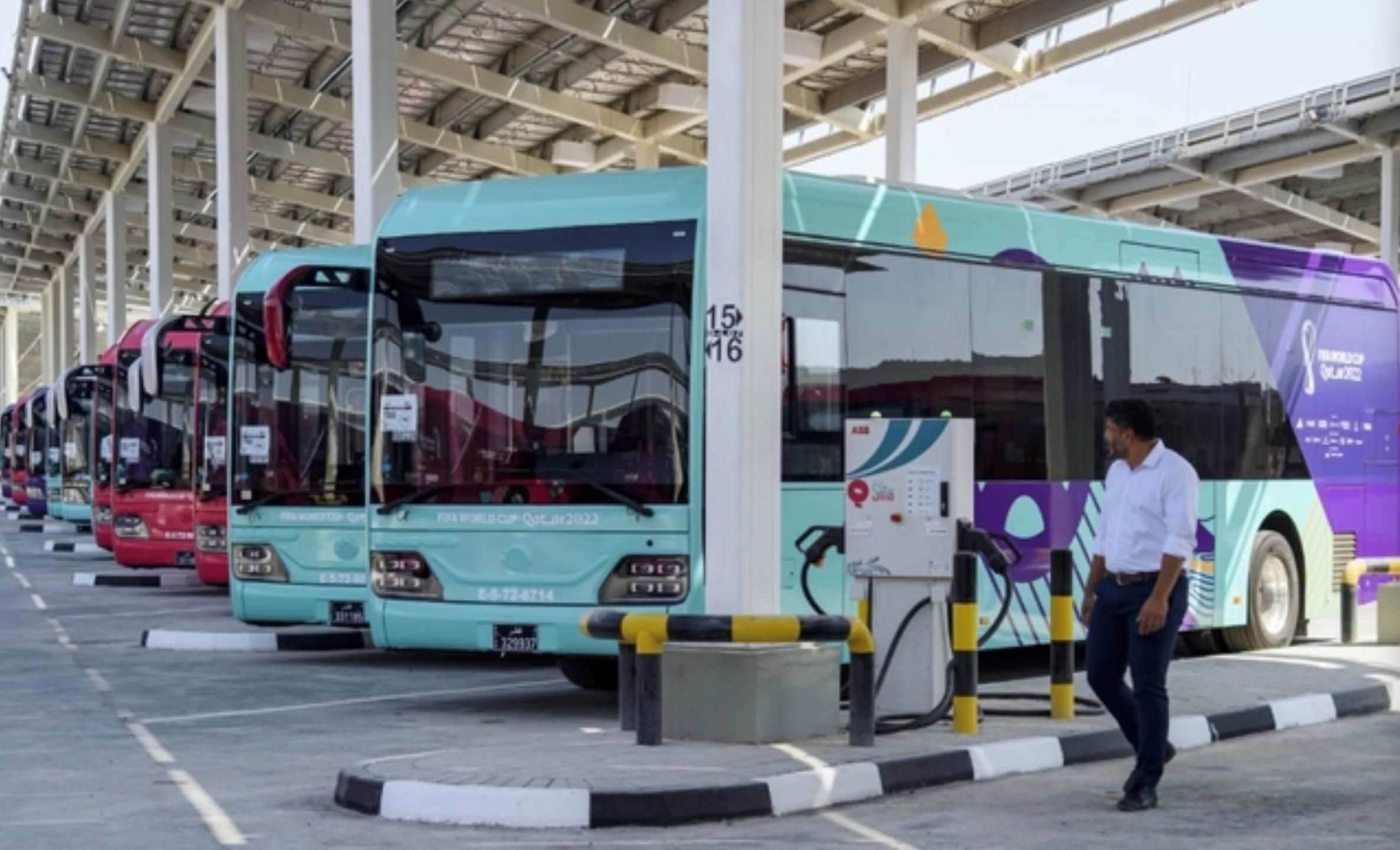 2022年卡塔爾世界杯期間,一輛輛五彩斑斕的大巴車,滿載球迷穿梭在首都多哈街頭。這些大巴車的很大一部分來自中國。這支中國新能源“綠色車隊(duì)”成為保障世界杯交通服務(wù)的主力軍。