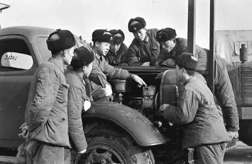 這是雷鋒(左三)向戰(zhàn)友傳授安全行車和節(jié)油的經(jīng)驗(yàn)(資料照片)。新華社發(fā)