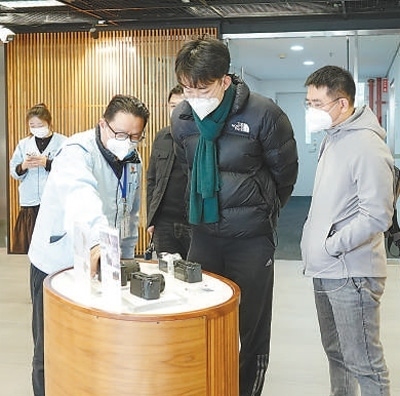 江蘇分社記者王偉健(右一)和白光迪(右二)在江蘇省無錫市新吳區(qū)索尼數(shù)字產品(無錫)有限公司采訪。祝 林攝