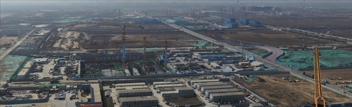 這是位于雄安新區(qū)啟動(dòng)區(qū)的中國(guó)中化雄安總部001大廈項(xiàng)目建設(shè)現(xiàn)場(chǎng)(3月30日攝,無人機(jī)照片)。