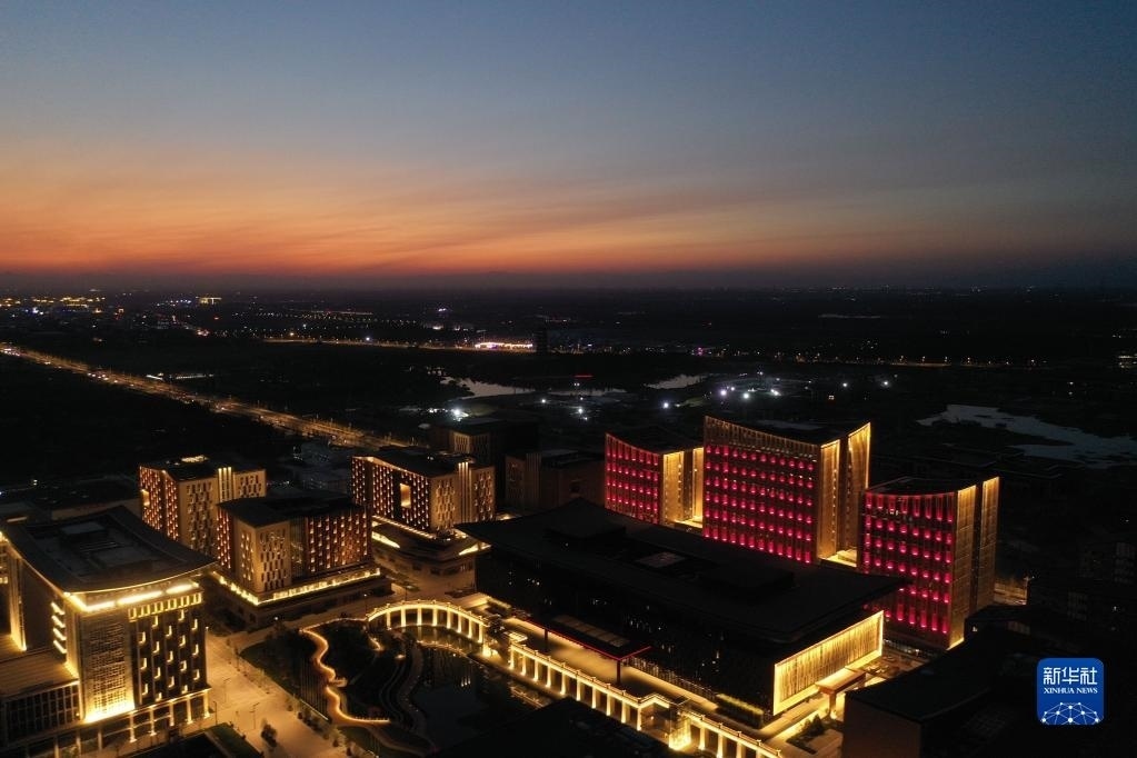 這是雄安新區(qū)商務(wù)服務(wù)中心夜景(2022年9月7日攝,無人機(jī)照片)。新華社記者 朱旭東 攝
