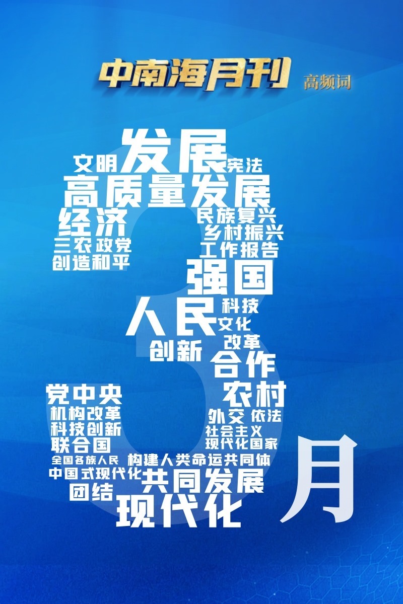 新方位、新征程、新使命。央視網(wǎng)I學(xué)習(xí)數(shù)據(jù)庫匯總分析習(xí)近平總書記3月公開講話顯示,“發(fā)展”“人民”等詞的出現(xiàn)頻率居前列。引人關(guān)注的是,“強(qiáng)國”“現(xiàn)代化”等詞同樣高頻出現(xiàn)。