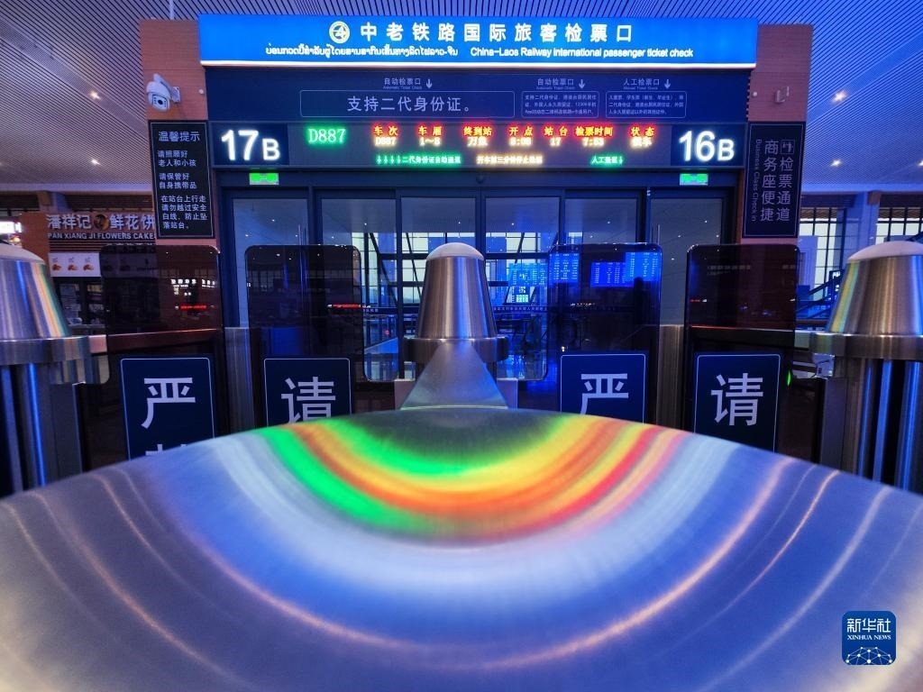 當(dāng)日,中老鐵路開行國(guó)際旅客列車,昆明至萬象間可實(shí)現(xiàn)乘火車當(dāng)日通達(dá)。新華社記者 邢廣利 攝