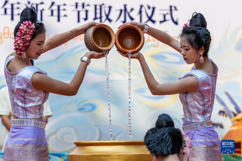 當日,云南省西雙版納傣族自治州舉行傣歷新年取水儀式及潑水狂歡,數(shù)萬名各族群眾和游客在景洪市用相互潑水的方式互送祝福、傳遞歡樂。